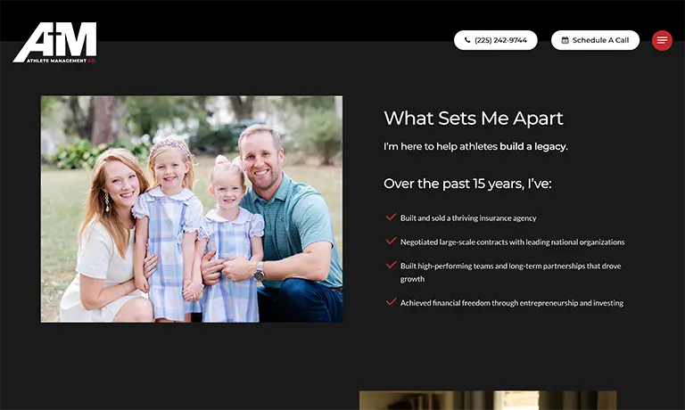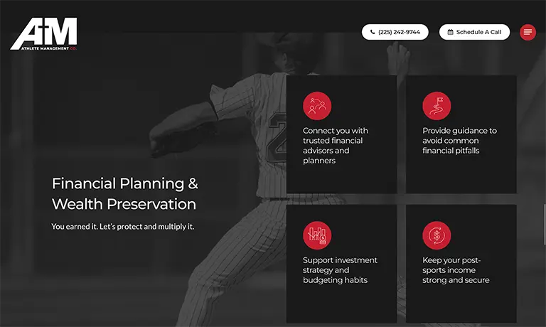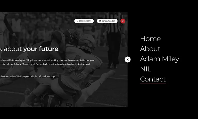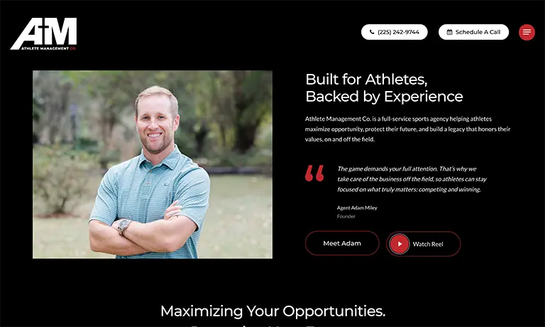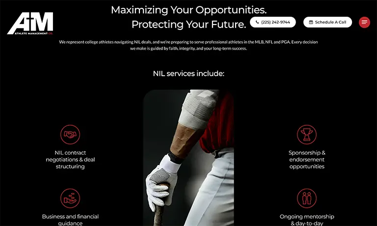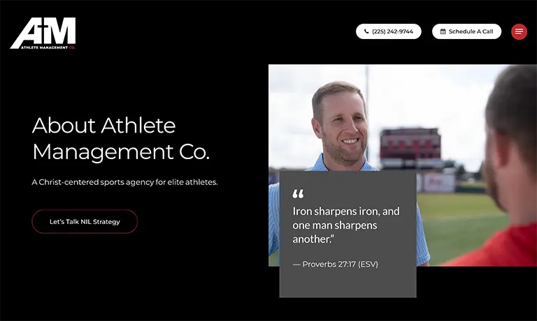AthleteManagementCo.com is a marketing website for an independent sports agency.