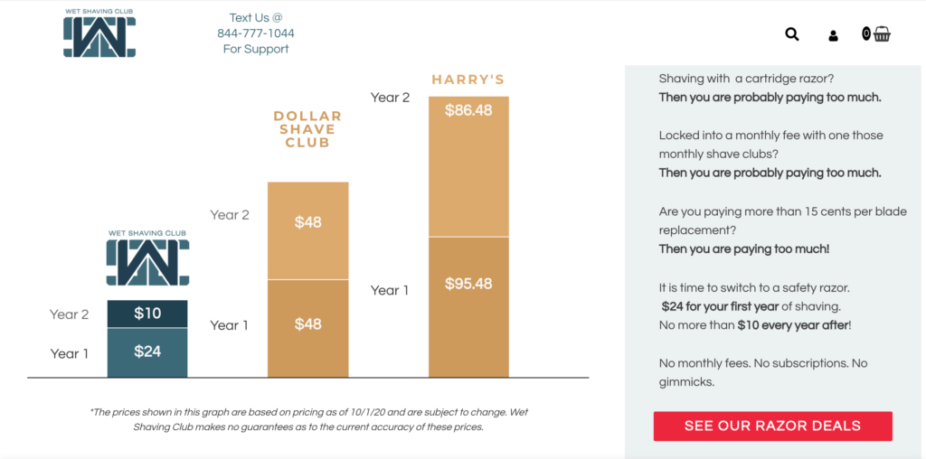 The vision for the interactive marquee was to display a slider to animate the marquee such that a stack of razor blade packages would increase as well as the total price above them, to illustrate the unique value they provide with their subscription service vs. their competitors.